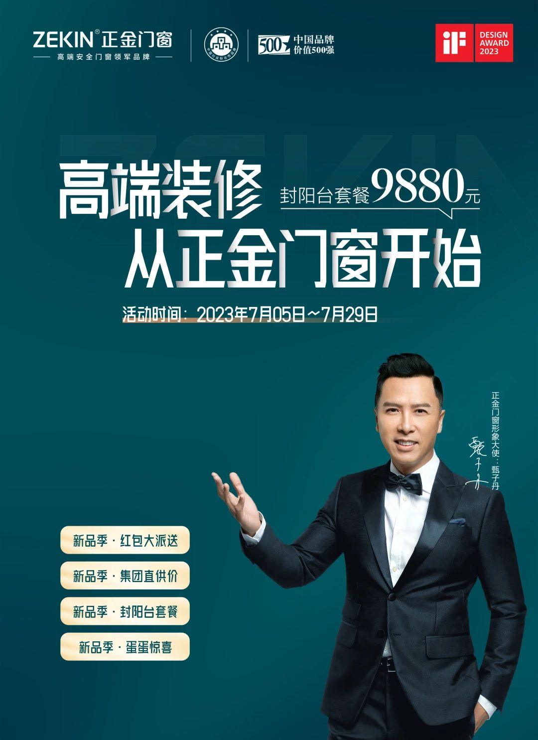 精選好品質 多重福利享不停 正金門窗 全國800+專賣店恭候您的光臨 為美好“家”速 窗造品質生活 正金門窗 斥資千萬全國高鐵LED霸屏式廣告 7月7日即將強勢來襲 強觸達 高曝光 高品質 打造家喻戶曉的高端安全門窗品質傳播 心動約“惠” 一觸即發 7月5日-7月29日 高端裝修 從正金門窗開始